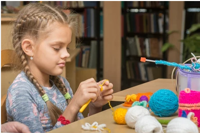 After-school classes teaching crochet skills. Children work at their own pace through a curriculum of projects and learn:
